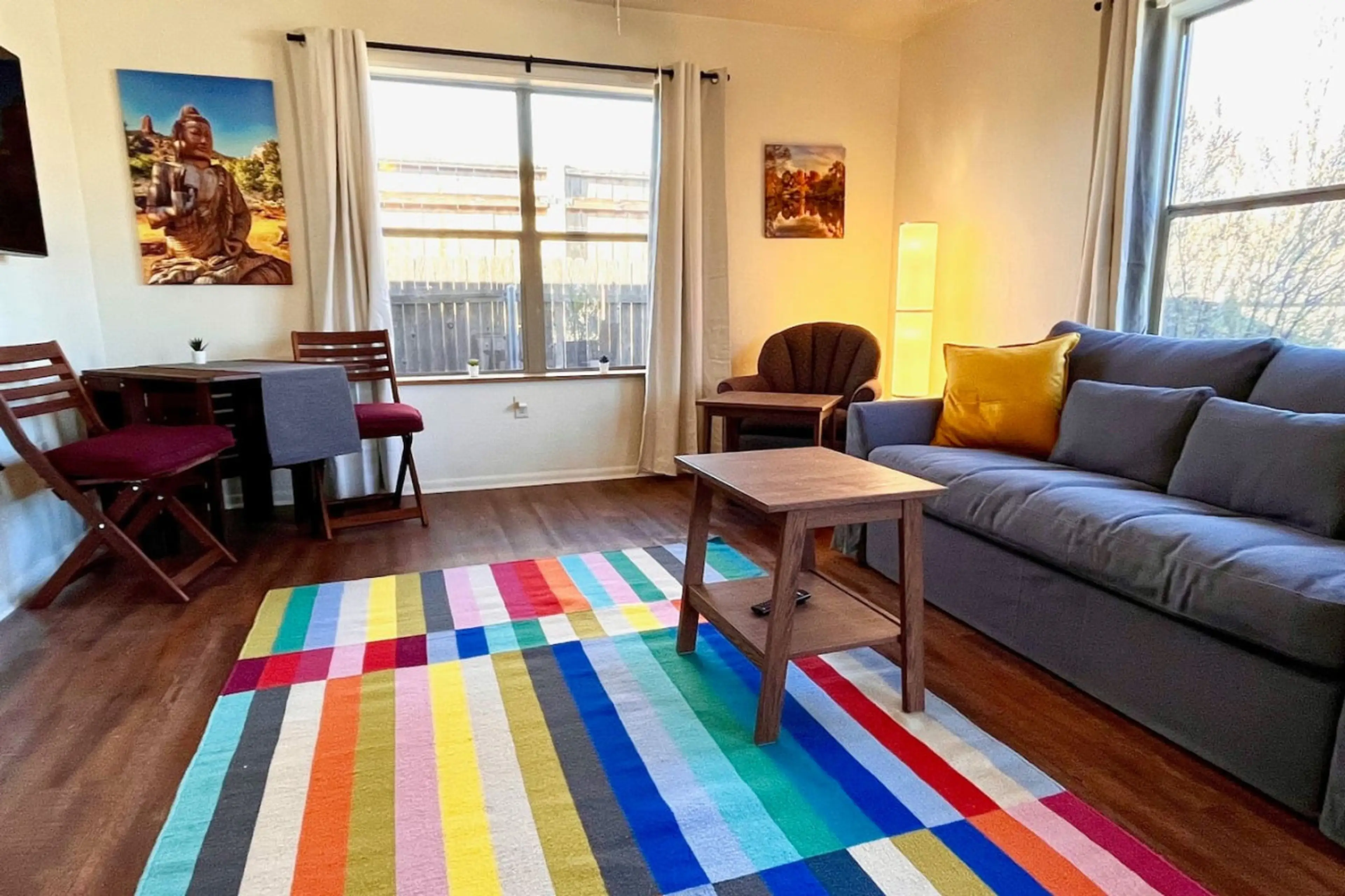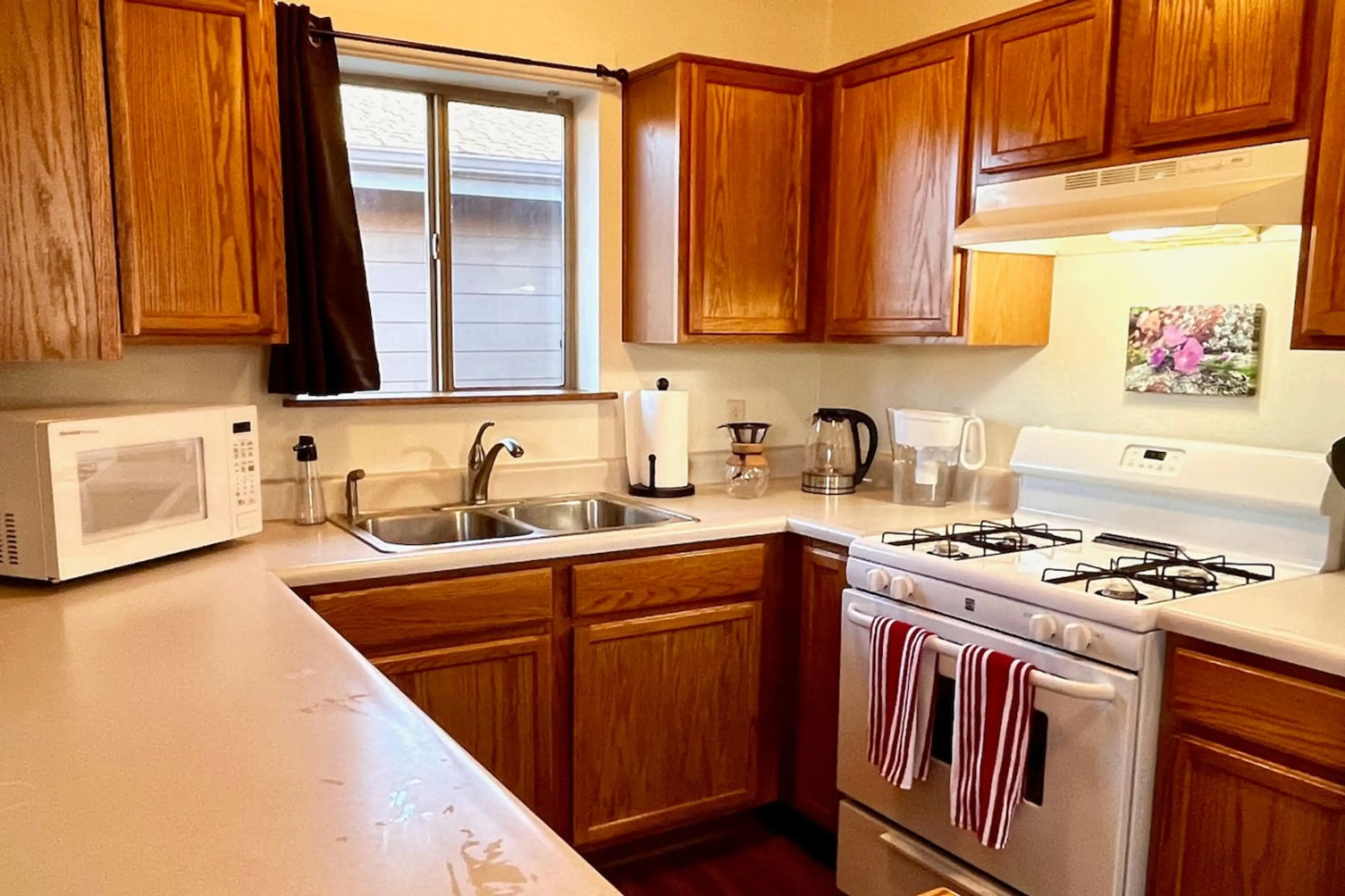 The apartment living area is spacious but the bedroom was small with little room for luggage. We did not realize there was no dishwasher in the kitchen. Overall, it was a nice place and we would consider staying there again. It is convenient to downtown Williams and the Grand Canyon Railway.