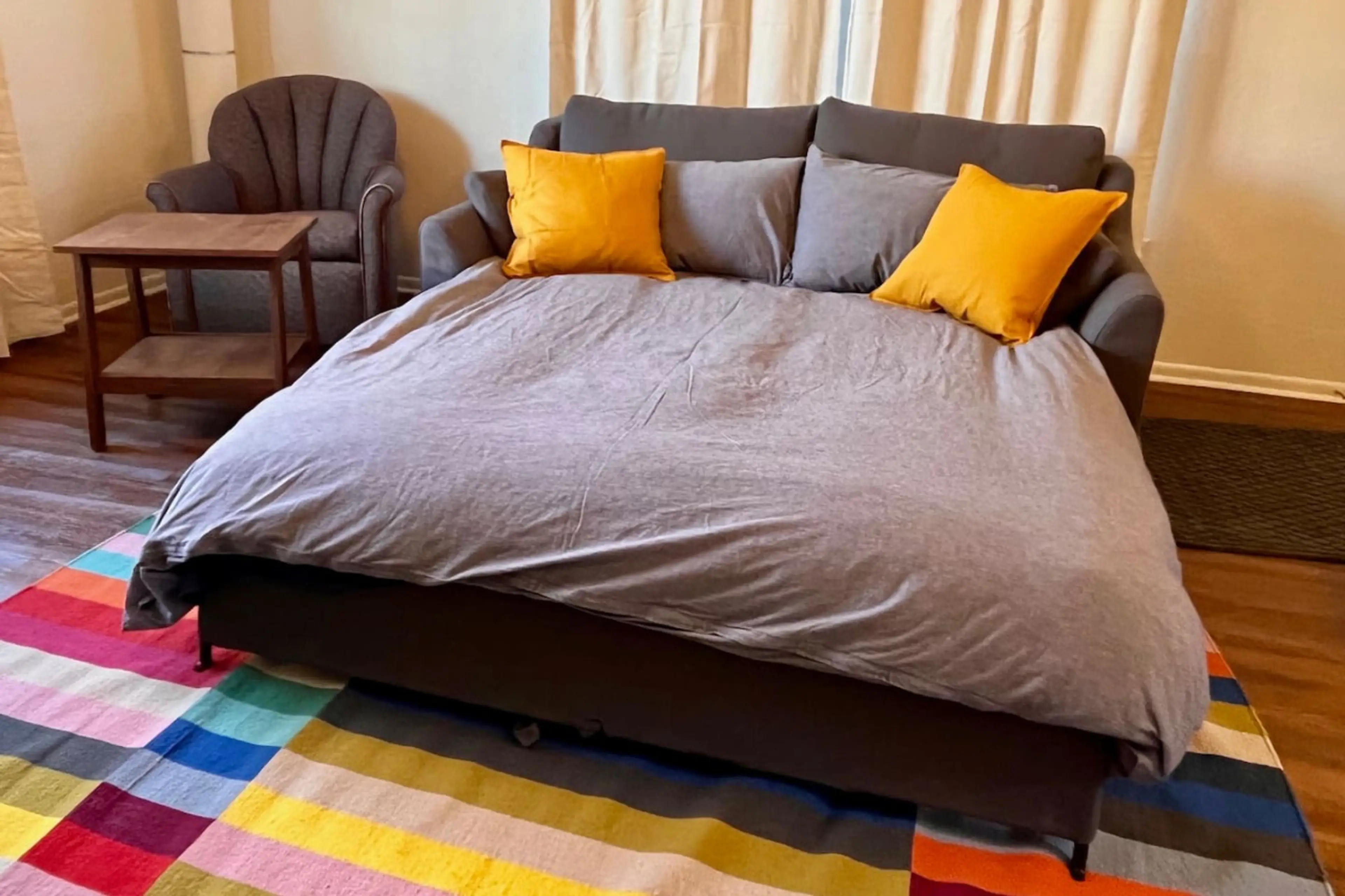 Nice to have full kitchenNice to have full laundry and laundry supplies Nice to have coffee provided Furniture a little dated in living room Bed very comfortable