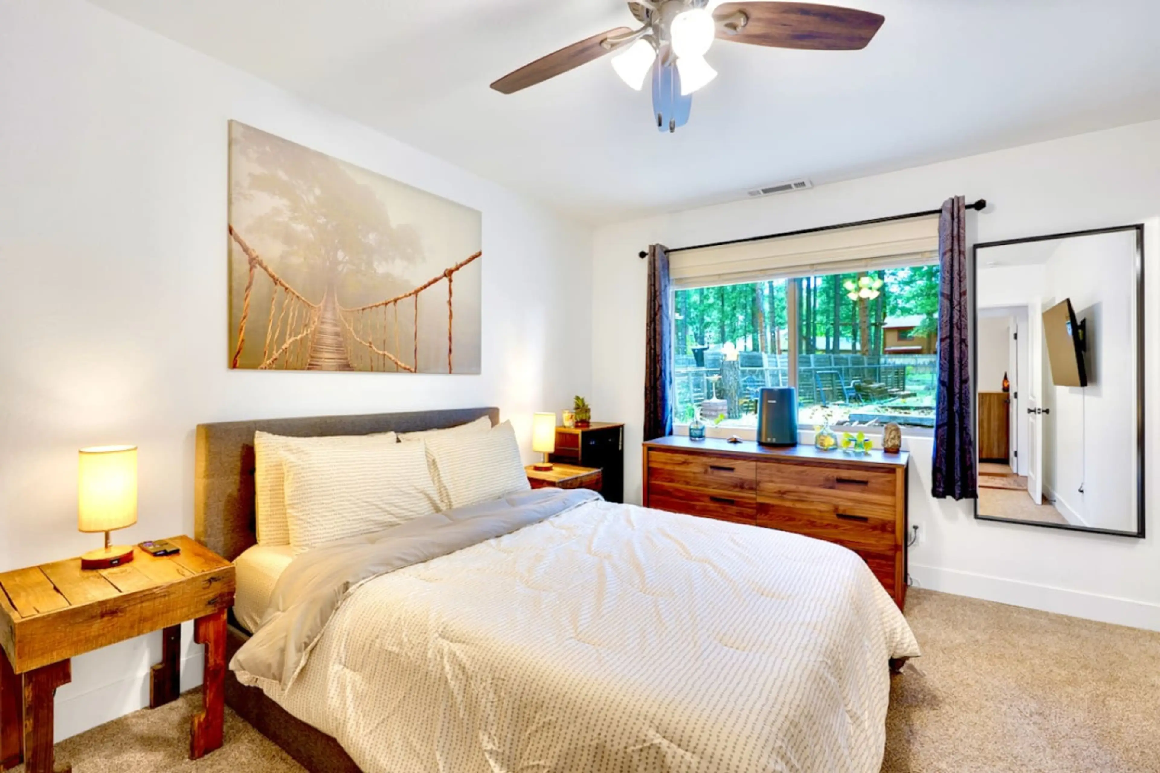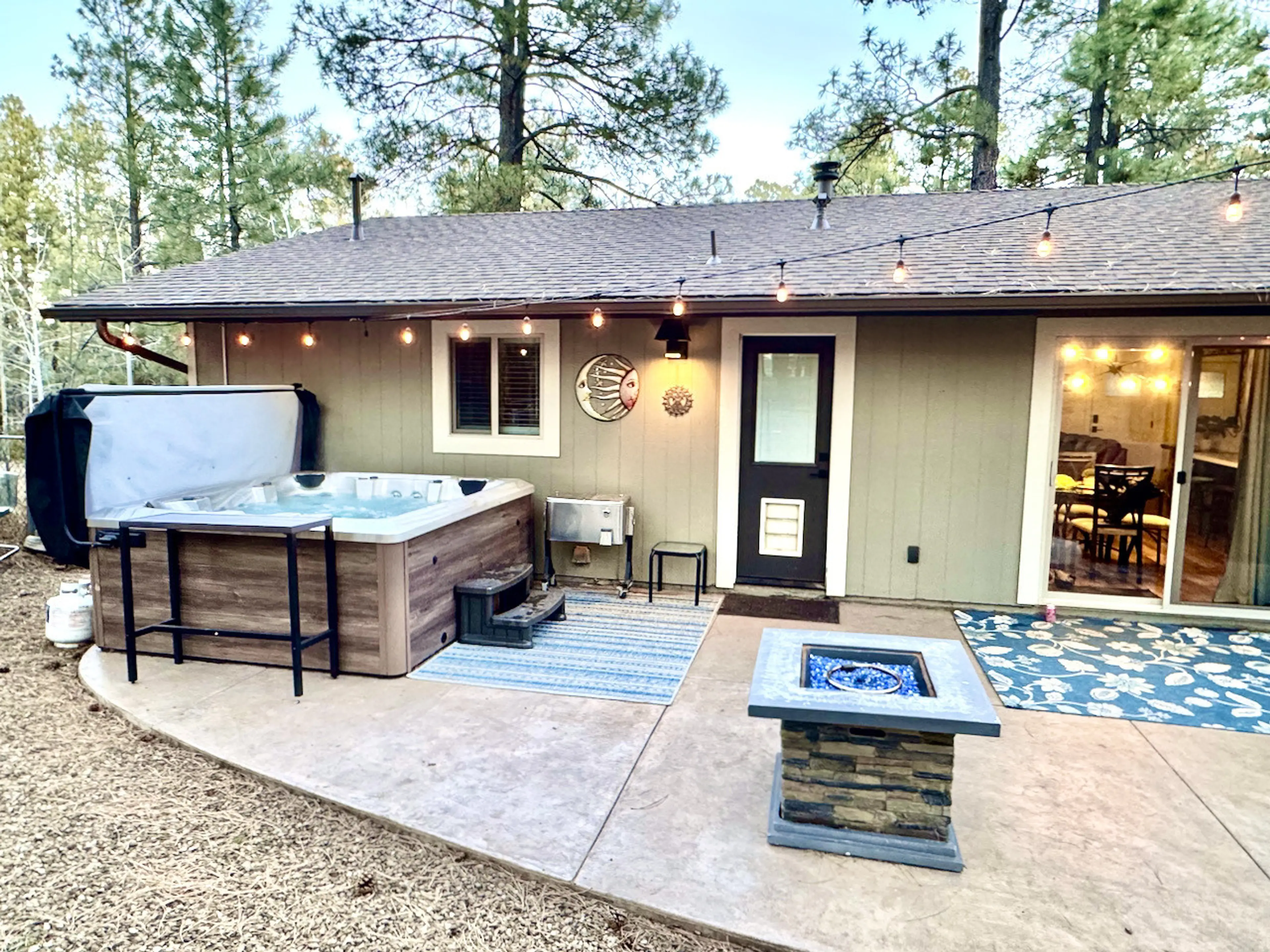 Private wooded retreat with a hot tub in the trees and a one-of-a-kind disc golf putting course. This beautifully remodeled Flagstaff home sits on a large, fully fenced lot and features a bright, open ranch-style layout filled with natural light. Enjoy 3 queen bedrooms, 2 modern bathrooms, fast Wi-F...